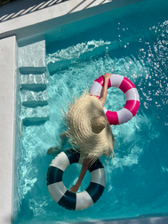 juste à côté de la rivière La Cèze. A l'extérieur, sur la terrasse pavée, vous êtes en pleine nature, vous entendez le bruit de la rivière, les rapaces et les cigales typiques. Il y a aussi une piscine de relaxation confortable pour se rafraîchir. Et il y a des chaises longues pour bronzer, se détendre ou lire.